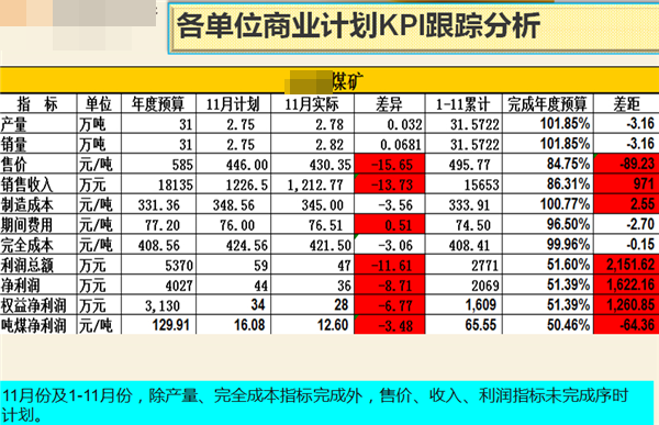 ?對指標設置紅線原則。納入指標庫,建立本礦的用于方針管理業(yè)績評價考核的指標庫,另一方面,對關鍵指標實行動態(tài)跟蹤,分析;達成對生產(chǎn)管理的支持。