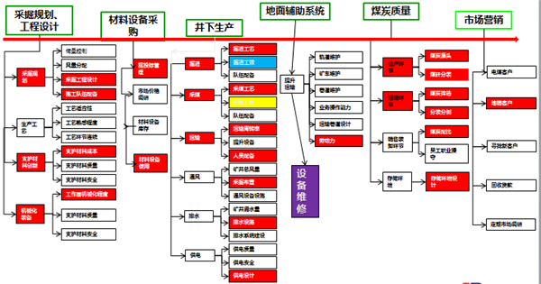 ?學習從煤礦生產(chǎn)環(huán)節(jié)找影響因素;繪制生產(chǎn)工序、環(huán)節(jié)流程圖,從各環(huán)節(jié)中尋找“七種浪費”,初步掌握價值鏈分析方法;