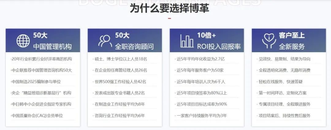 博革結(jié)合跨行業(yè)、多領(lǐng)域豐富的咨詢經(jīng)驗(yàn),并融合國內(nèi)企業(yè)的特點(diǎn),設(shè)計(jì)了博革智造的模型,幫助國內(nèi)1000+企業(yè)實(shí)現(xiàn)從精益化到自動(dòng)化、數(shù)字化、智能化的跨越轉(zhuǎn)變,有效為企業(yè)提升核心競爭力,實(shí)現(xiàn)智能化生產(chǎn)運(yùn)營系統(tǒng)的搭建及陪跑,助力企業(yè)全面實(shí)現(xiàn)卓越運(yùn)營。博革顧問團(tuán)隊(duì)均來自世界500強(qiáng)企業(yè),如豐田、三星、富士康等,其中多位專家是中國企業(yè)聯(lián)合會(huì)管理咨詢專家、全國六西格瑪推進(jìn)委員會(huì)專家委員;六西格瑪注冊(cè)黑帶考試命題專家委員、韓國能率協(xié)會(huì)、日本能率協(xié)會(huì)專家。并且博革在全國擁有上百家戰(zhàn)略合作伙伴,其中包含了:自動(dòng)化、數(shù)字化、智能化等各個(gè)領(lǐng)域的戰(zhàn)略合作伙伴。