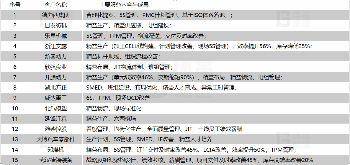 咨詢經(jīng)驗:具有8年全職從事精益管理咨詢和實踐與推進工作經(jīng)驗,能夠精準地識別客戶地需求和痛點并企劃推進方向。擅長將精益理念和客戶實際情況結(jié)合,深度挖掘和分析解決問題,重在落地實踐輔導(dǎo)。