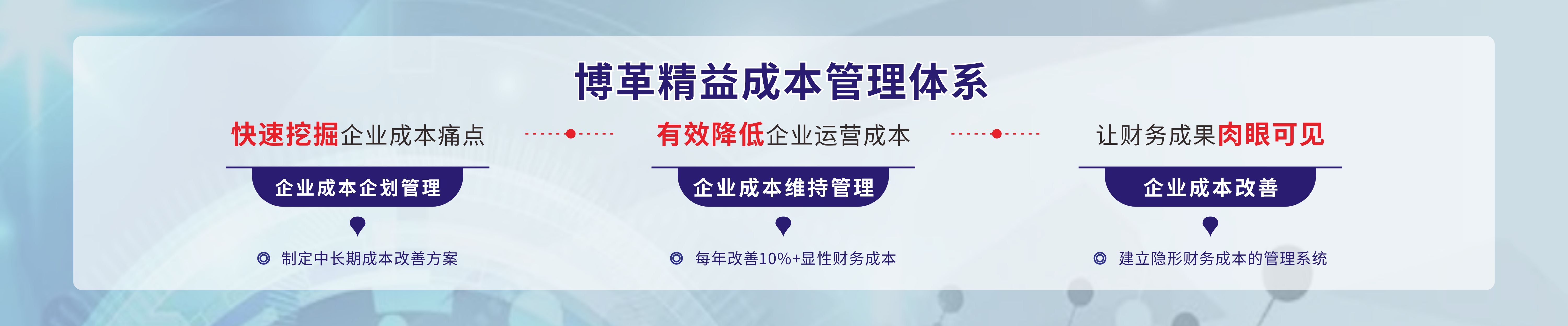 對(duì)于每家企業(yè)來(lái)講成本管理都是其管理重點(diǎn),但真正把成本管控到位的企業(yè)少之又少。其關(guān)鍵原因是沒(méi)有把成本管理從企業(yè)的戰(zhàn)略管理角度進(jìn)行總策劃。博革咨詢(xún)的精益成本管理把成本管理區(qū)分成3大部分,即企業(yè)成本企劃管理、企業(yè)成本維持管理、企業(yè)成本改善。