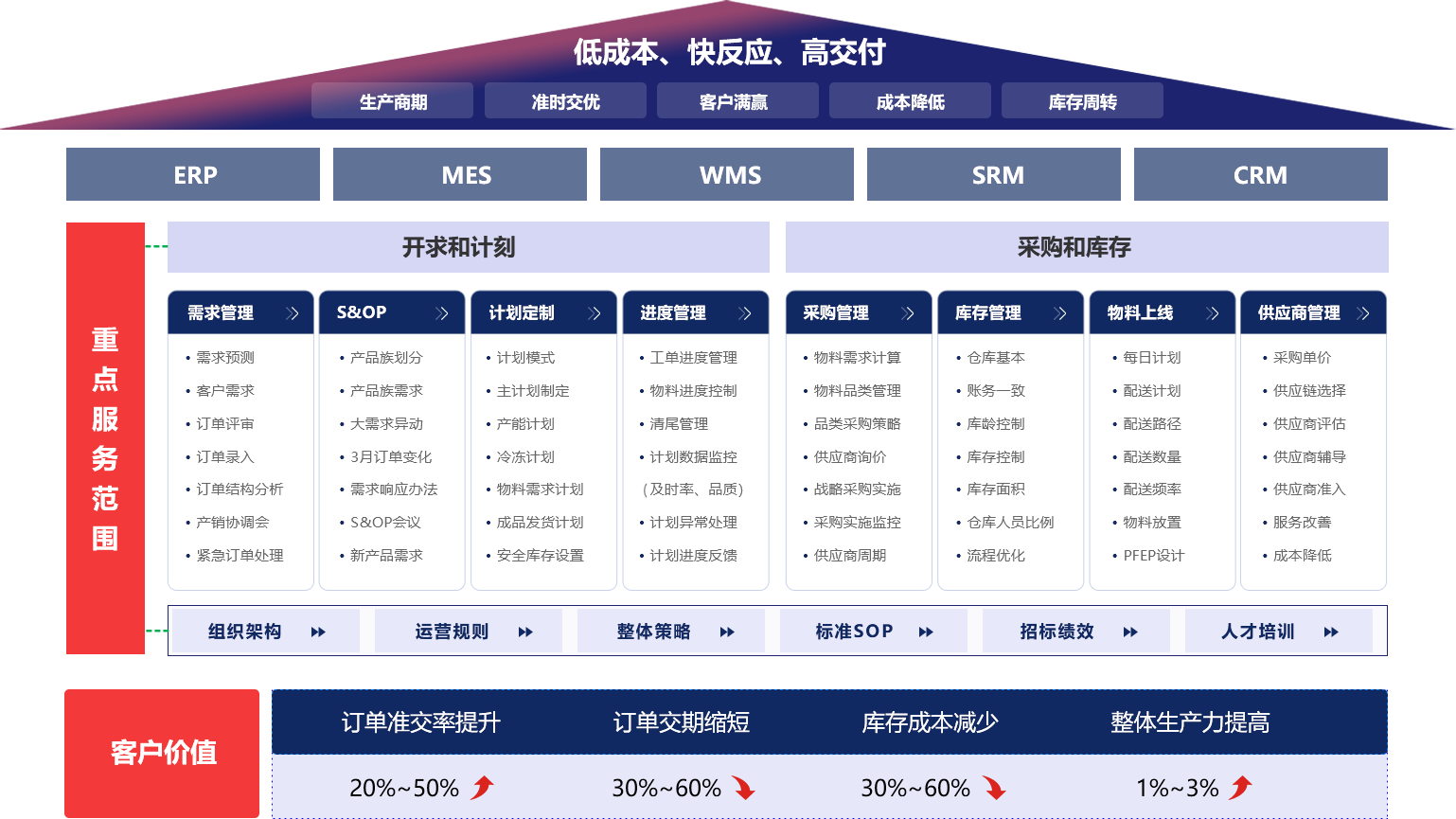 - “精益供應(yīng)鏈咨詢”是打通端到端敏捷供應(yīng)鏈,從客戶訂單管理,主生產(chǎn)計(jì)劃和物料需求計(jì)劃,采購(gòu)訂單管理到供應(yīng)商庫(kù)存和出貨管理協(xié)同共享,