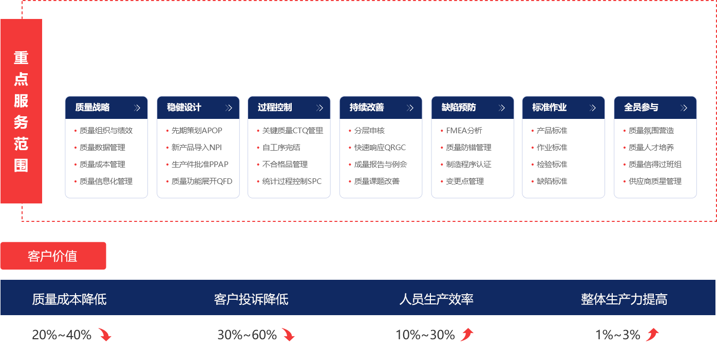 - “精益質(zhì)量咨詢”是快速搭建零缺陷質(zhì)量文化體系,突破多種管理體系并存,碎片化,落地難,“部門墻”嚴(yán)重,