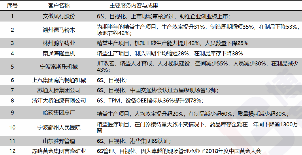 熟悉行業(yè):鑄造、鋼鐵、新材料、汽車、石油、化工、交通、機(jī)械、醫(yī)療、制藥、紡織、路橋、礦業(yè)等企業(yè)的精益現(xiàn)場(chǎng)管理、6S管理、TPM設(shè)備管理等;
