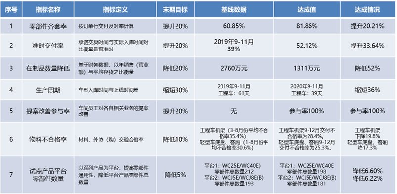 針對這些短板,本項目主要以建立流動化的生產(chǎn)車間;建立精益生產(chǎn)運營模式:提升生產(chǎn)效率、提升準(zhǔn)時交付率、生產(chǎn)周期縮短、降低在制品庫存;建立精益供應(yīng)鏈運營模式:提升供應(yīng)商來料準(zhǔn)時率和品質(zhì),提升零部件齊套率、訂單交付及時率;建立精益研發(fā)管理模式:提升標(biāo)準(zhǔn)化設(shè)計、研發(fā)項目管理流程;導(dǎo)入精益人才培養(yǎng)及改善提案制度:提升骨干員工精益實戰(zhàn)能力、提升員工改善參與率。