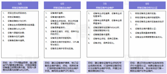 本次項目以東方集團(tuán)旗下全資子公司金航鈦業(yè)為主,以快速導(dǎo)入TPM活動,減少設(shè)備故障停機,提產(chǎn)增效為第一要務(wù)。以打造TPM自主維護(hù)和專業(yè)維護(hù)團(tuán)隊為核心,完善設(shè)備管理系統(tǒng),構(gòu)建可持續(xù)發(fā)展的設(shè)備管理團(tuán)隊。