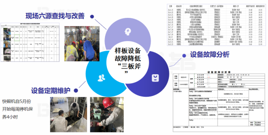 為了降低故障。博革咨詢設(shè)計了降低故障三板斧-六源查找與改善、定期維護(hù)保養(yǎng)、故障分析與改善,通過六源查找與改善活動一共發(fā)現(xiàn)并改善了40件,制訂2臺樣板機設(shè)備維護(hù)保養(yǎng)計劃,設(shè)備故障5why分析完成10件,并對所有分析與改善實施進(jìn)行了追蹤。