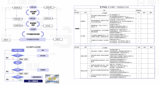 第四步完善自主維護(hù)認(rèn)證體系,搭建可持續(xù)維持的自主維護(hù)現(xiàn)場。通過現(xiàn)場認(rèn)證,員工能清晰感知什么才是做到位的,哪些地方可以再進(jìn)一步優(yōu)化,評分不是目的,完善自我認(rèn)證體系才是最終目的。