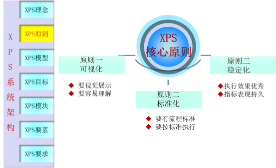 為達(dá)成幫助集團(tuán)成為世界頂級企業(yè)的目標(biāo),XPS以“可視化、標(biāo)準(zhǔn)化、穩(wěn)定化”為指導(dǎo)原則,推進(jìn)A集團(tuán)每個企業(yè)的運(yùn)營效率的大幅度提升。