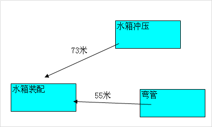 分析鋁水箱車間物流示意圖發(fā)現(xiàn),鋁水箱沖壓至裝配工序物流距離73M,彎管工序至裝配車間55米。且存在多點分散生產(chǎn)、搬運(yùn)距離長;生產(chǎn)信息溝通不便,在制品多;生產(chǎn)面積沒能合理利用等問題,因此重新調(diào)整生產(chǎn)布局,簡化物流路線。