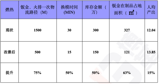 4)鈑金在制品占地面積由327平米降低至121平米,提升63%;