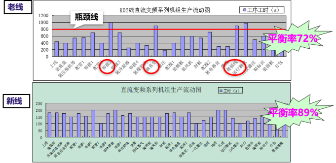 平衡率:通過(guò)線體設(shè)計(jì)及輔助工裝設(shè)備的引入,重新調(diào)整排崗消除瓶頸工序,平衡率提高10%