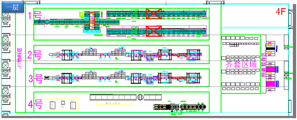 (1)一層線體設(shè)計(jì)布局圖2、總裝工藝布局設(shè)計(jì)圖