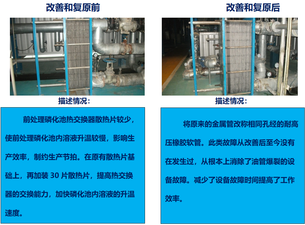 通過(guò)改善使前處理的生產(chǎn)效率提高了,以每輛車節(jié)約20秒的磷化時(shí)間,全年生產(chǎn)4.2萬(wàn)輛車計(jì)算,全年可減少開(kāi)機(jī)時(shí)間:42000*15/(60*60)=175小時(shí),前處理每小時(shí)能耗850元,每人每小時(shí)12元工資,前處理班組25人,則全年可為公司節(jié)約: (850+12*25)*175=201250元。