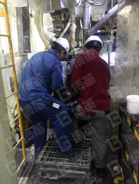 三、清掃共分兩組進行,對加料口正面和背面做清掃,并按步驟先對加料口、加料口導(dǎo)流槽、廢料收集槽等進行清理