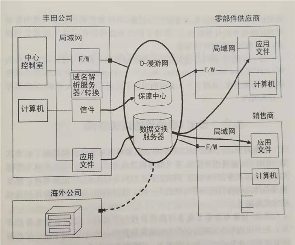 雖然1989年引進(jìn)的豐田汽車(chē)公司TNS從90年代初就開(kāi)始發(fā)揮功能集團(tuán)各公司之間可以利用網(wǎng)絡(luò)進(jìn)行電子數(shù)據(jù)交換了,但由于其中國(guó)內(nèi)外汽車(chē)生產(chǎn)公司所使用的方式(存儲(chǔ)器中的信息安排等)是各公司獨(dú)有的東西,所以不具備通用性曾經(jīng)成了瓶頸。